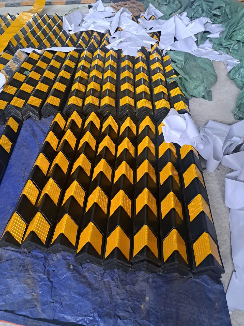 - Hình dạng: Cao su màu đen- phản quang Vàng.
